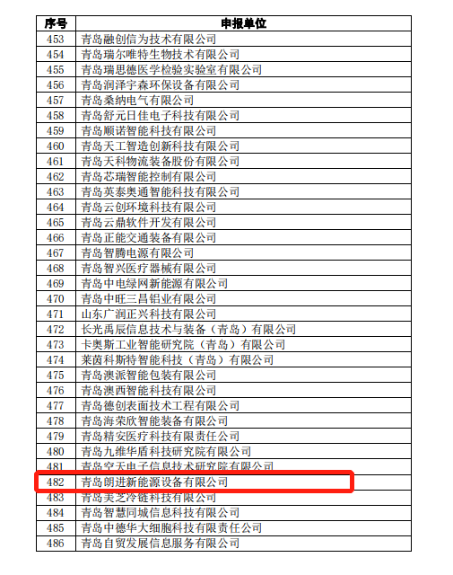 近日青島市民營經濟發展局發文公布首批雛鷹企業名單,青島朗進新能源設備有限公司位列其中。