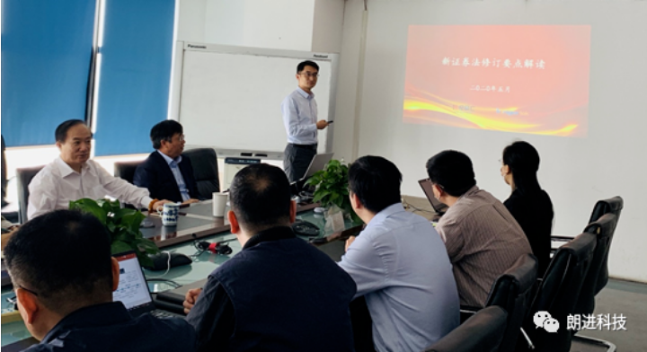 投資有風險,入市需謹慎,廣大投資者的參與及合法理性投資,是維護資本市場穩定的主要因素,亦是激發市場活力的重要基礎。朗進科技作為上市公司,秉持公平、公正及維護投資者合法權益的原則,積極響應投資者保護活動,加強合規治理和運作,強化董監高的責任意識及履職能力,引導投資者樹立理性投資理念,2020年5月15日,朗進科技邀請世紀同仁趙小雷律師為董監高及廣大投資者解讀新《證券法》。