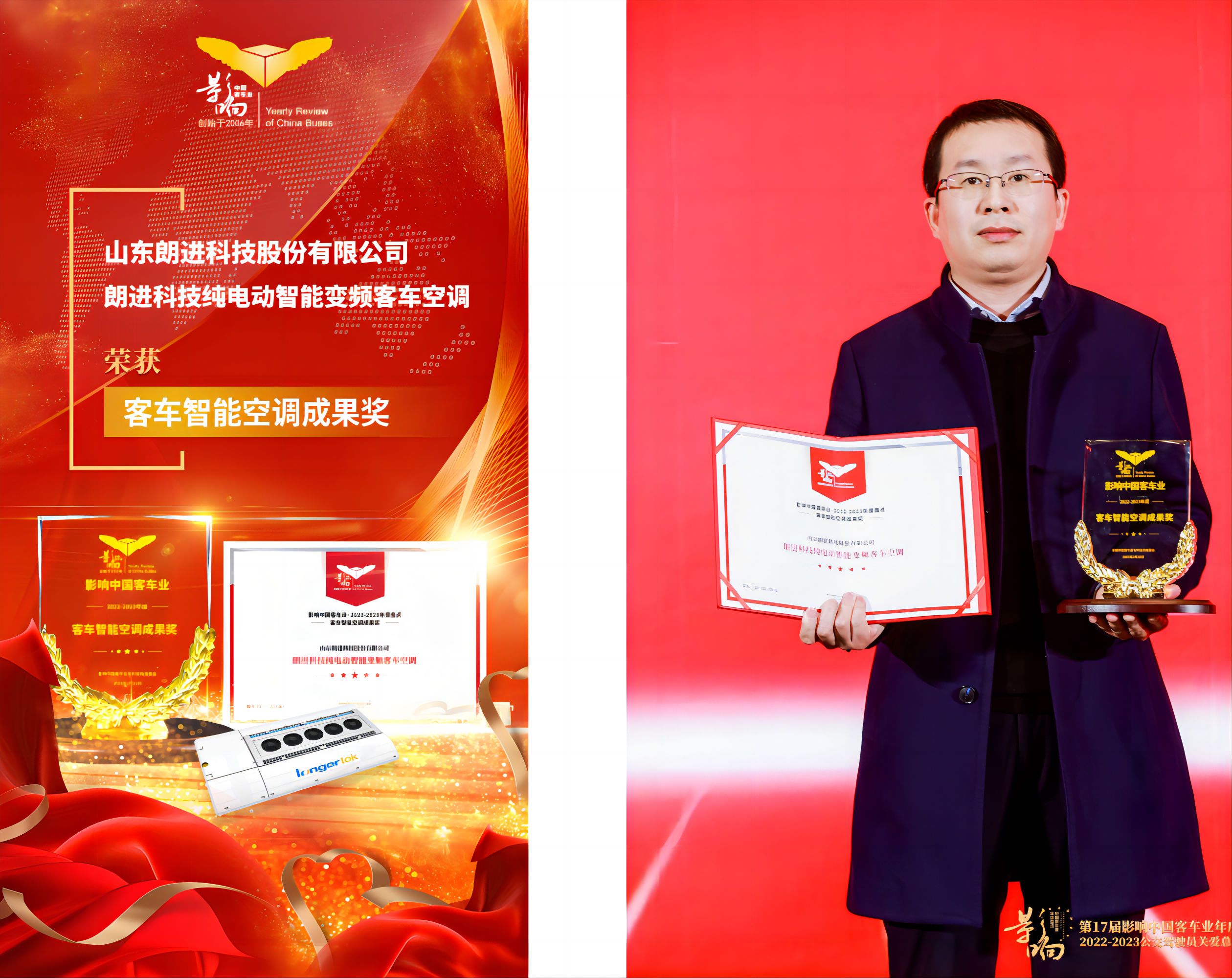 2023年2月22日,第17屆影響中國客車業年度盤點活動”在“六朝古都”南京隆重舉行。公共交通,客運行業,客車制造,技術配套等行業專家和資深代表大家齊聚一堂,共同盤點行業年度事件。經過客戶推薦,行業調研,專家評審,層層角逐選拔等方式,朗進科技純電動智能變頻客車空調脫穎而出,榮膺影響中國客車業2022-2023年度“客車智能空調成果獎”。