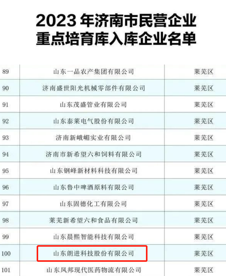 為突出政策的導(dǎo)向性,濟(jì)南市建立了全市民營(yíng)企業(yè)重點(diǎn)培育庫(kù),從在本地注冊(cè)獨(dú)立核算的民營(yíng)企業(yè)中,篩選出以四大主導(dǎo)產(chǎn)業(yè)和制造業(yè)為主、年銷售收入過5億元的企業(yè)108家,服務(wù)業(yè)和建筑業(yè)年銷售收入過30億元的企業(yè) 24 家以及有市重大建設(shè)項(xiàng)目且總投資過3億元的38 家制造業(yè)企業(yè),納入培育庫(kù),入庫(kù)企業(yè)共計(jì) 170家,將在《若干措施》中給予重點(diǎn)支持。朗進(jìn)科技憑借自身優(yōu)勢(shì)被納入2023濟(jì)南市萊蕪區(qū)民營(yíng)企業(yè)重點(diǎn)培育庫(kù)。